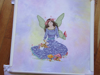 I started Shimmering Mermaid on May 12th, she is my ninth Mirabilia mermaid. She is being stitched on 28 count opalescent lugana by Silkweaver and the color is called Aegean Aqua.
